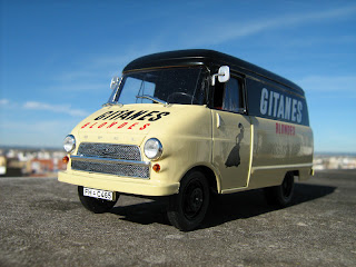 Este modelo que os presento es una auténtica rareza por su deco, ya que está prohibido que un modelo (erróneamente considerado como juguete por los Ministerios de Industria en Europa) pueda venderse con decoraciones de marcas de tabaco (y "Gitanes" lo es). Así que no me explico como este modelo pudiera ser vendido, lo que me impulsa a pensar que tal vez era un modelo publicitario de regalo para ciertos clientes (el embalaje me hace pensar esto). Es mucho más común encontrarse este furgón con la deco "Metzgerei" (carnicería). Starline ha hecho en esta ocasión un modelo correcto, sin muchos alardes, de mediano tamaño, buena calidad y un poco flojo en el frontal. Se nota que ya tiene bastantes años, pero es un modelo bastante interesante para el coleccionista de 1:43.